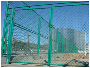 3)球場圍網(wǎng)規(guī)格: (1)包塑絲徑:2.5MM(鍍鋅) (2)網(wǎng)孔 50 MM X 50 MM (3)尺寸:4000MM X 3000 MM (4)立柱:直徑76/2.2MM鋼管 (5)橫柱:直徑76/2.2MM鋼管焊接